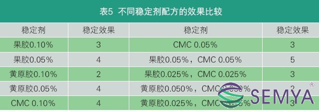 通過感官打分,比較出穩(wěn)定性最好的穩(wěn)定劑配方為:果膠0.05%,CMC 0.05%(均為質量分數)。
